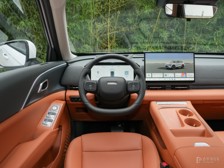 车内配备14.6英寸清晰不反光的高清大屏+10英寸HUD驾驶和全液晶仪表盘。此外系统16GB运行内存,无论是在操作车机系统,还是运行各种应用时,都能保持极致流畅。另外实拍车型采用黑棕双色拼贴,质感表现不错。